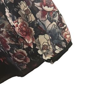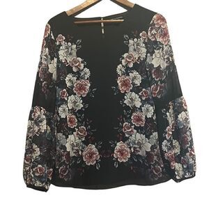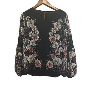 Keywords: floral blouse, balloon sleeve, womens blouse, black blouse, zac & rachel, long sleeve blouse, floral print top, dressy blouse, casual blouse, ladies top, large, size L, floral, elegant, bohemian