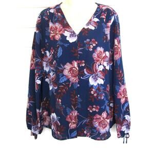Zac & Rachel Floral Print Button Front Long Sleeve Blouse size Medium