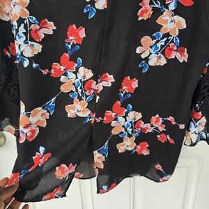 Zac & Rachel Floral Tunic Blouse 1X Plua Black Red Blue Lace Trim Flare Sleeves