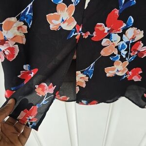 Zac & Rachel Floral Tunic Blouse 1X Plua Black Red Blue Lace Trim Flare Sleeves