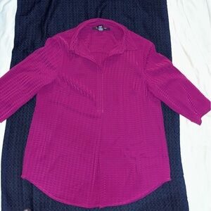 Chic fuchsia blouse with a textured finish. Ideal for versatile styling.