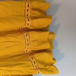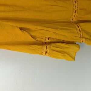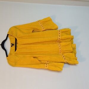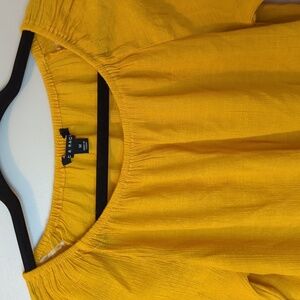 Excellent condition gold top with flowy sleeves. Oversized. Loose fitting and light weight. No stains or holes.