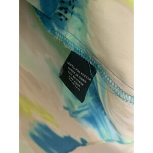 This Zac & Rachel tunic top in XL size is a vibrant addition to any wardrobe. The colorful, asymmetrical hem and classic V-neckline make it a versatile piece for any occasion. The 3/4 sleeves and polyester material provide both comfort and style. Perfect for women who appreciate a unique and stylish look.