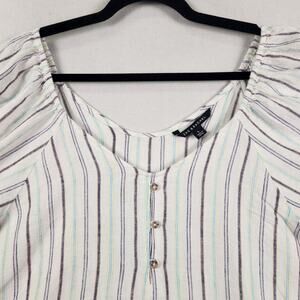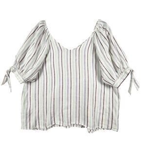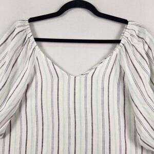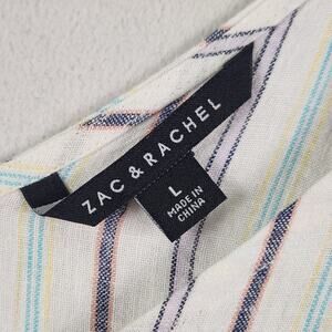 Zac & Rachel Linen Blend Peasant Blouse Women ‘s SZ L Cream Multicolor Striped