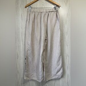 Zac & Rachel Linen Blend Wide Leg Pants Size M Beige Cropped Pull On Pockets LNC