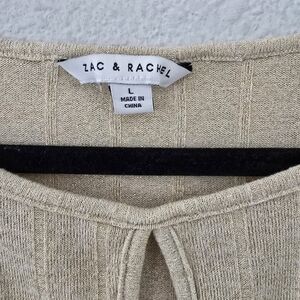 Zac & Rachel Metallic Blouse Women Sz L Beige Flutter 3/4 Sleeve Front Cut Out