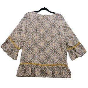 Zac & Rachel Multi-Colored Gauze Tunic Top Crochet Lace Detail Boho Peasant 1X