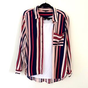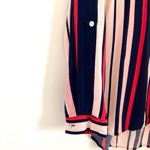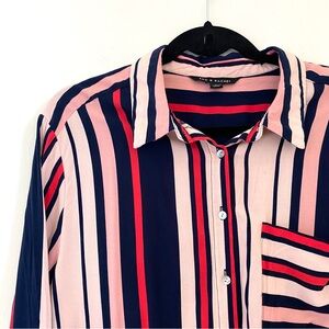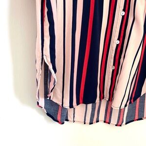 Zac & Rachel Multicolor Pink Navy Striped High Low Blouse Shirt, Large