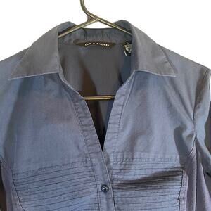 Zac & Rachel Navy Blue Layered Collared Classic Button Down Shirt Women Sz M