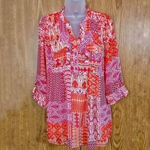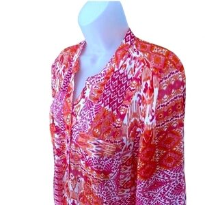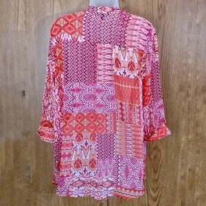 Zac & Rachel Orange Pink Mixed Pattern Sheer Top