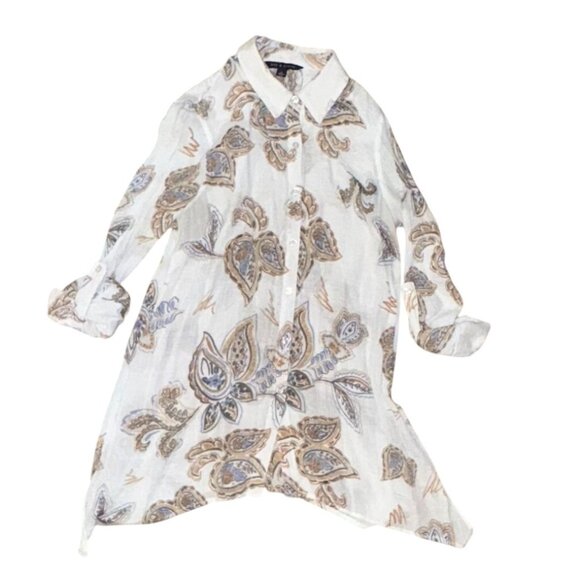 Zac & Rachel Paisley Button-Down Tunic Top S White/Brown/Blue Lightweight