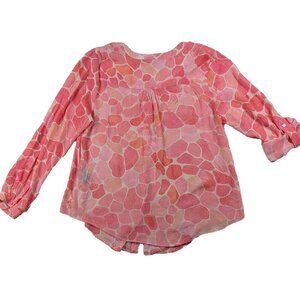 Zac & Rachel Pink Print Long Sleeve Blouse Size XL