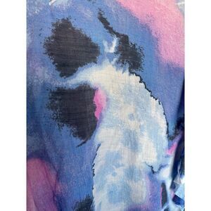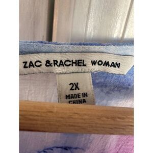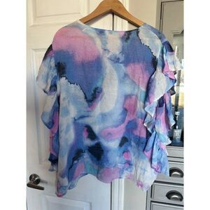 Zac & Rachel Plus 2X Flounce Sleeve Top Blouse Blue Pink Crinkle Rayon Blend