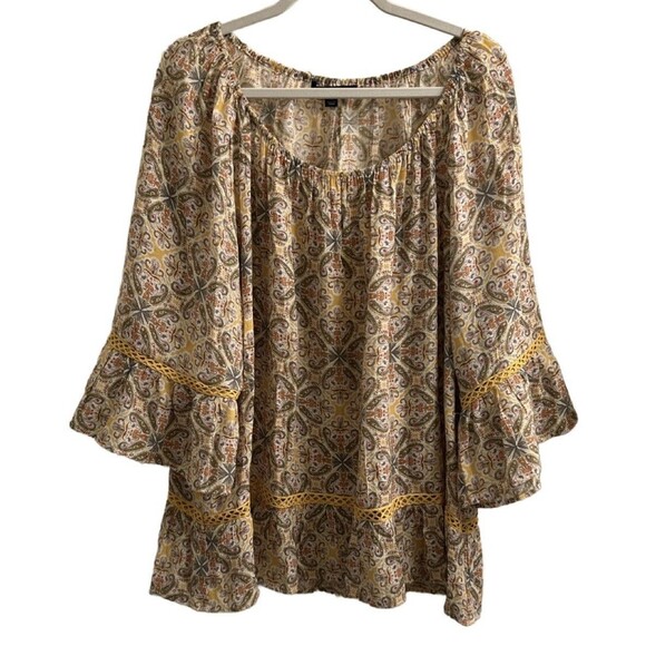 Zac & Rachel Plus Boho Peasant Prairie Gauze Blouse Tunic Top Sz 2X