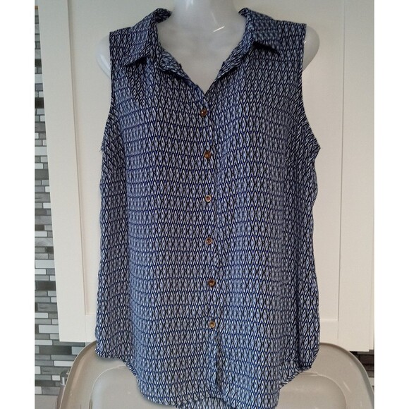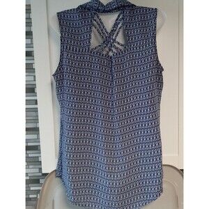 Zac & Rachel blue Button strappy Back Sleeveless Collared Blouse