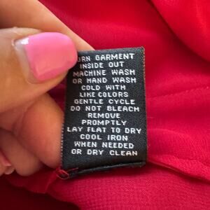Pullover, red chiffon, lined in red, hi-low, layered hem, long sheer split sleeves with elastic cuff, relaxed fit