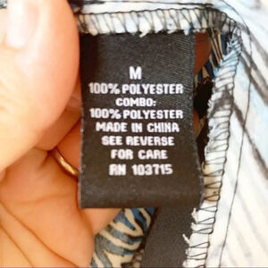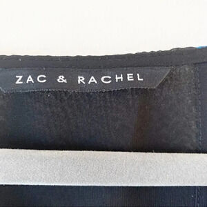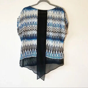Zac and Rachel blue and black geometric stripe shirt sleeve top with tie back detail at back waist. Polyester. Size medium. Cute top! Preowned.