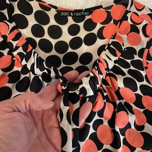Zac & Rachel Sleeveless Blouse. SzL. Pit to pit 23” shoulder to hemline 27”. Cute peekaboo opening chest with a tie . Has a snag see pics