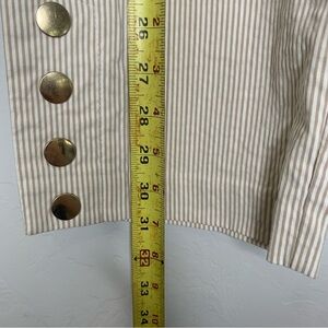 These are tan capris with brown strips. They have four gold buttons on each leg and are a size 12. They are in great pre owned condition no stains or flaws.