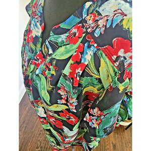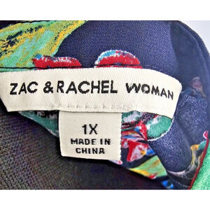 Zac & Rachel Teaberry Floral VNeck Tunic Short Ruffle Sleeves Blouse Plus Sz 1X