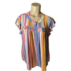 Zac & Rachel Top L Multicolor Striped Ruffle Sleeve Blouse Large