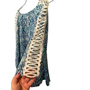 Zac & Rachel Top Women's Large Blue Printed 100% Polyester Long Sleeve Pullover.