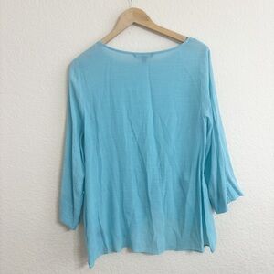 Zac & Rachel Turquoise Solid 3/4 Sleeve Blouse Size Large