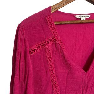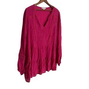 Zac & Rachel V-Neck Embroidered Tiered Long Sleeve Boho Blouse Pink Size 2X