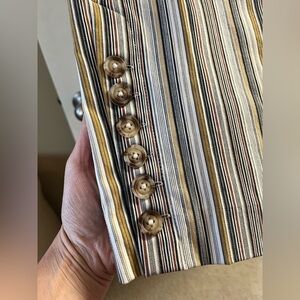 EUC excellent condition & quality! Beautiful mixed colors, vertical stripes ankle pants by Zac & Rachel. Stretch waist band. Pockets still sewn. Gorgeous button detail at leg cuff. Rayon, nylon & spandex blend. Stretch. Measurements in photos! Women’s size 8. Smoke free home.