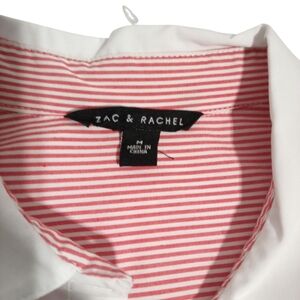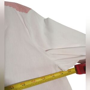 Zac & Rachel White Popover Top with Red Stripe Back & Roll Sleeves Medium