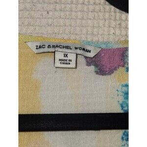 Zac & Rachel Woman 1X Colorful Watercolor Dolman Ruffle Sleeve Blouse Top