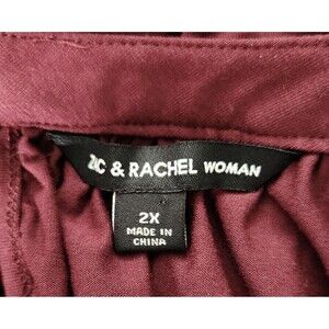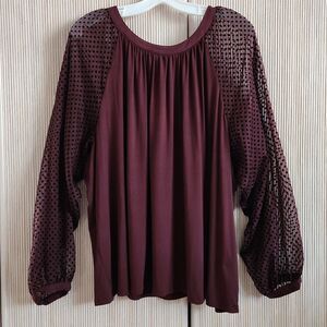 Zac & Rachel Woman Blouse Size 2X Burgundy Long Sheer Polka Dot Sleeves