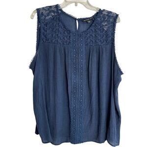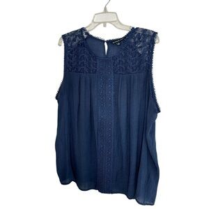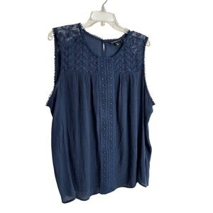 Zac & Rachel Woman Sleeveless Top Blouse Womens Plus Size 2X Navy Blue with Lace