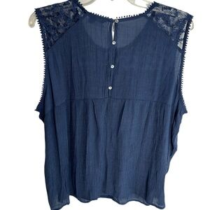 Zac & Rachel Woman Sleeveless Top Blouse Womens Plus Size 2X Navy Blue Feminine Lace Overlay. Super cute button down half way down the back