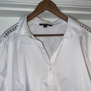 Zac & Rachel Women’s Button-Up Blouse 2XL – White with Lace Sleeves – NWT