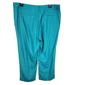Zac & Rachel Womens Cropped Pants Size 12 Linen Blend Button Detail Pockets Blue