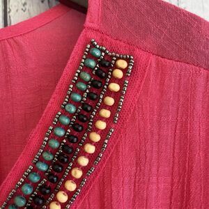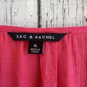 Zac & Rachel Womens Hot Pink Boho Peasant Top Size XL Beaded Smocked Puff Sleeve