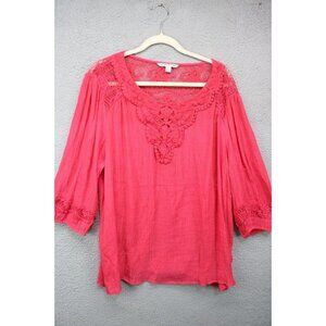 Zac & Rachel Women's Pink Gauzy Crochet Lace Tunic-Size 3X-Boho