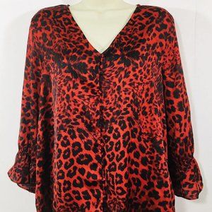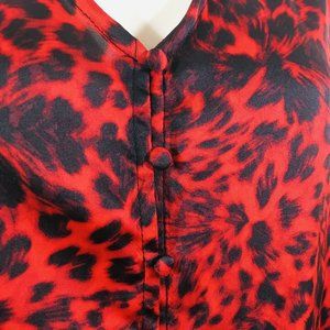 Zac & Rachel Womens Satin Blouse Sz P/ L Red Cheetah Print Covered Buttons