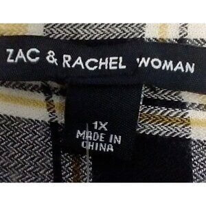 Zac & Rachel Womens Shirt Top Plus Size Button Up Roll Tab Plaid - 1X NWT