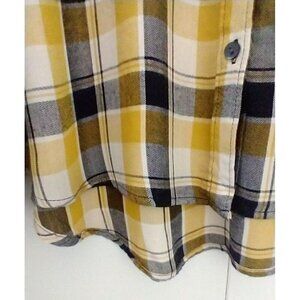 Zac & Rachel Womens Shirt Top Plus Size Button Up Roll Tab Gold/Yellow & Black Plaid - 1X NWT