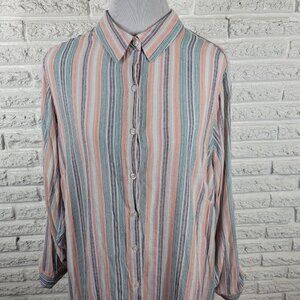 Zac Rachel Womens Top 2X Plus Roll Tab Sleeve Stripe Pink Blue Pastel STR125E