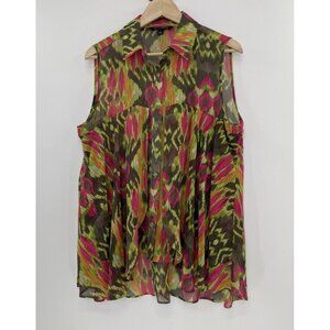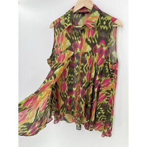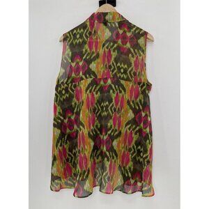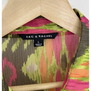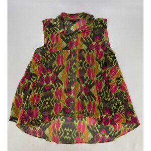 Zac & Rachel Women’s Tribal Print Flowy Chiffon Button Front Blouse Size L Boho