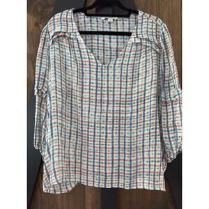 Zac & Rachel XL Gingham Plaid Cottagecore Blouse Top NWOT