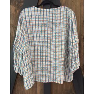 Adorable gingham blouse with pleats on the soft balloon sleeves and shoulders. Perfect cottagecore vibe! Size XL. Removed tags and realized shirt was too big - never worn.