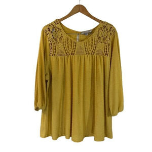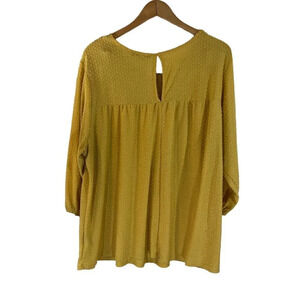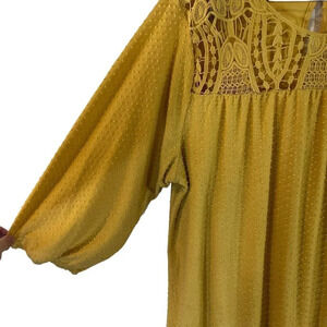 Zac & Rachel Yellow Blouse Plus 3X Swiss Dot Textured Crochet Chest Pullover Top