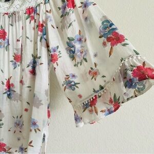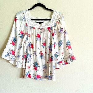 Zac & Rachel floral bell sleeve blouse size S boho flowy prairie feminine top