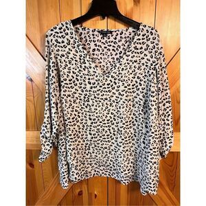 Zac & Rachel woman hi low size 2X animal print V-neck roll tab sleeves pit to pit 26” length 28.5” longest part (2548)