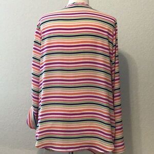 Zac & Rachel Multi Color Stripe Tunic Top Zipper V Neck Roll Tab Sleeve Size L