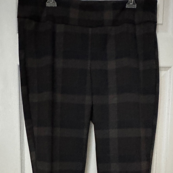 Zac and Rachel - Brown and Navy plaid dress slacks. Size XL / no tags, but never worn. Very sharp looking / 55% polyester 41% Rayon 4% spandex/ pull-on ankle length. Slacks look dark in picture. See the closeup of the fabric to determine the color.